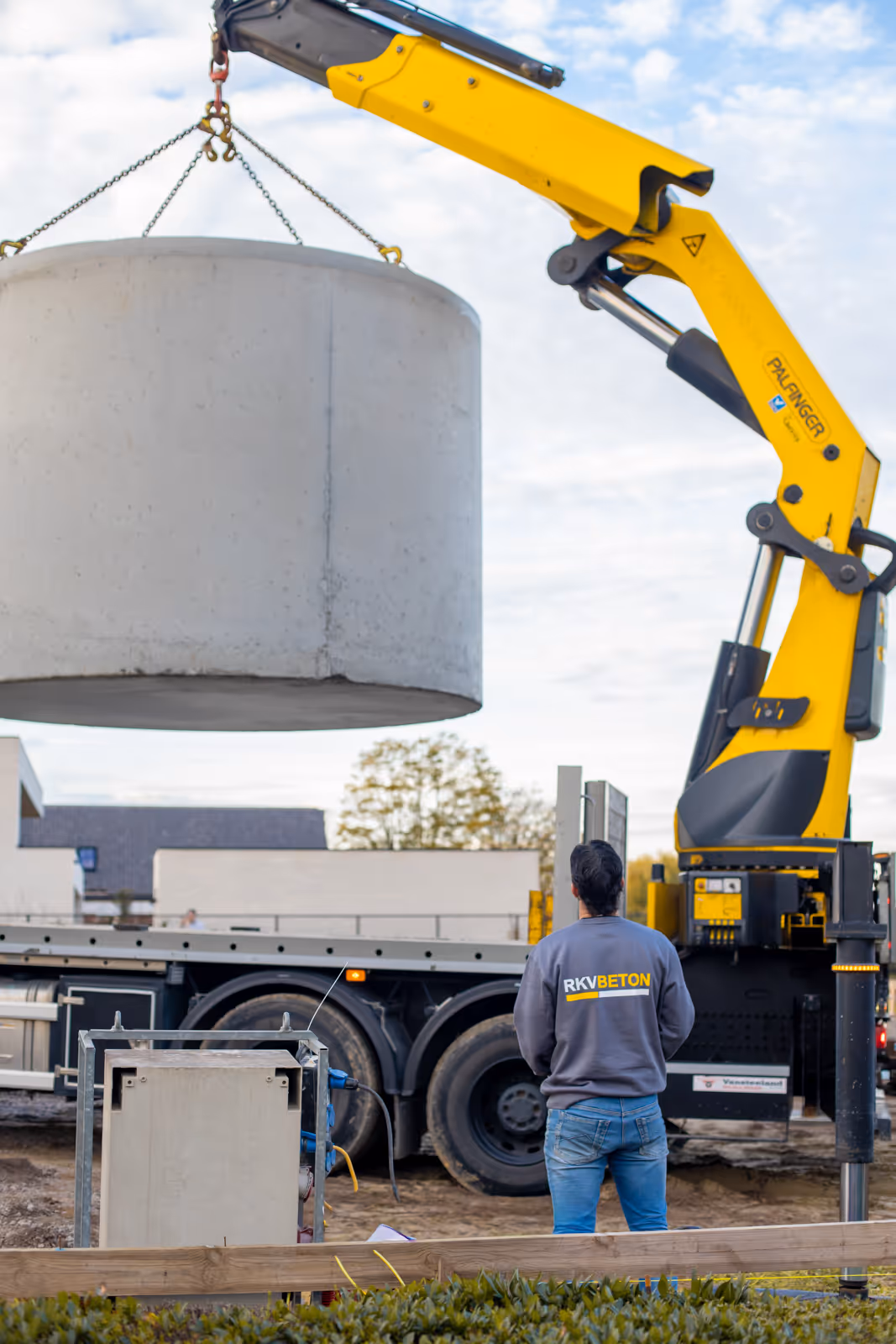 Bij RKV leveren we niet alleen betonproducten van topkwaliteit, we zorgen ook dat ze correct op hun plek geraken. Zo verzorgen wij ook de levering én plaatsing van onze betonproducten. Of het nu gaat om een regenput, controleput of ander prefab element, we denken mee van bij de bestelling tot op de werf.